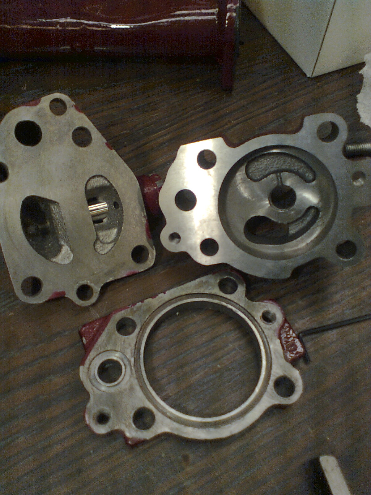 Oljepumparna då…? Jag har ju kapat ner höjden på pumphusen, och sänkt deplacementet (alltså, antal pumpade kubikcentimeter per varv) Problemet är att den kant jag kapat bort var bred för att inhysa en O-ring.