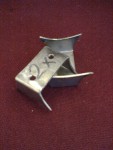 - Det är inte många som förstår hur lång tid det tar att göra en sån här klämgrej. Kapa, borra, grada, försänka, borra, grada, slipa rundning, slipa alla kanter, gänga och sedan fräsa en liiiten styrklack mellen bitarna så att den verkligen klämmer. Den syns i skarven, längst till höger.