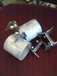 - Det började med några järnbitar. Den böjda hittade jag på vinden. Det är kvarlevor sedan 80-talet, då jag lagade hörn på flis-kontainrar där hörnen spruckit efter att de placerats på ojämnt underlag i skogen. Rundade hörn fördelade belastningen bättre än kantiga.