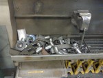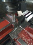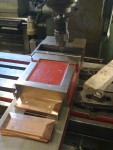 - Och här har jag fräst till klotsar som jag svetsat fast och borrat för att fästa fästet mot tråget. Borr och gängningen tar jag när jag kan vända tråget upp och ner.