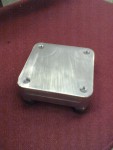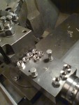 - Jag svarvar runda distanser av rostfria muttrar. Detta för att jag vill ha en gänga för att lättare kunna putsa och polera detaljen i framtiden. Den skruv som håller ihop kylpaketet är en dimension mindre och således bara passerar genom distansen.