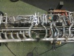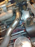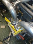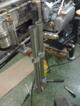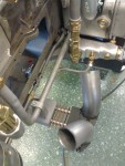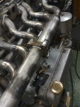 - Besvikelse nummer 2: När jag tillverkade rören bankade jag plåten så att man skulle komma åt muttern där det är som mest trångt. Jag missade i tanken (dömhövve!) att den muttern också skall hålla insugsröret. Detta innebär att jag får montera – om det över huvud taget går – insugs och grenrör med topparna ståendes upprätt i skruvstycket. Detta är en djävla stor miss av mig att jag inte tänkte på det. Men en tröst är att jag nu har en skarv mellan grenrörsdelarna, så grenröret kan delas per topplock och alltså sitta kvar på respektive topplock.