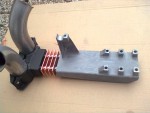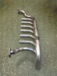 - Från andra flänsen ska det gå rör ner till första ljuddämparen. Den dämparen skall sitta fast och följa med motorn. Här är det första av de två rören.
