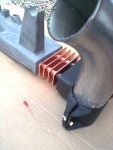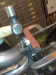 - Jag kom fel i rotationen av huvudröret, så det blev små kanter inne vid ”påfarterna”. Löste detta genom att fästa en fil i tigersågen.