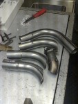 - … och här en del av anslutningspiporna. Alla böjar kommer från SIMONZ. Svensktillverkade av Ray Metallfabrik. Bra material och attans fin passform. Rekommenderas om ni ska tillverka avgassystem. Och tack och lov är böjarna inte aluminiserade.