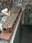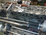 - Eftersom det är så trångt vid motorn så hämtade jag två topplock från vinden och skruvade fast på en U-balk.
