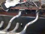 - Det är coolt med böjarna som ansluter mot huvudröret som motorvägsavfarter. Helst skulle jag ha velat att alla 16 pipor gick in i samma riktning och inte spegelvänt som det är nu. Men då hade jag varit tvungen att dra ner de två bakre blockens huvudrör intill torpedväggen, och dessutom fått de två huvudrören av olika längd med tillhörande problem att få dit ljuddämpare, så tyvärr… det fick bli så här.