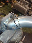 - För att få anslutningsröret att passa mot avgasflänsen, måste den bankas fyrkantig…