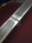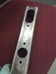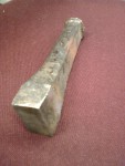- Den här har jag och bankar böjarna fyrkantiga kring för anslutning mot de fyrkantiga hålen i topparna. Jag har ägt den sedan pappa dog 1975, men aldrig tittat ordentligt på den. För första gången kan jag konstatera att den är handsmidd och riktigt, riktigt gammal – riktigt gammal…! Säkert sedan förr-förra seklet… Coolt!