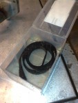 - Men enklast var det ju att först klämma dit en klutt med limpistolen, sedan en klamma. Tanken jag hade var att limkluttarna skulle smälta och dunsta av värmen när man startade motorn. Men detta skulle då inte göra något, eftersom överliggande lager då skulle hålla ihop hela klabbet. Detta skulle senare visa sig vara ett misstag!!