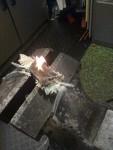 - Med förtjusning kapar jag bitar ur profilrör. Dessa bitar kommer från en skrotlåda och hamnade på mitt picup-flak.